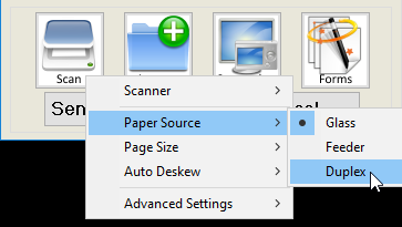 In addition, there are Scan button context menu items for changing the common scanner settings: