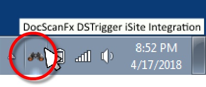 - Run DSTrigger.exe from your DocScanFx install folder and look in the system tray for the binocular icon indicating DSTrigger is listening for integration events. You won't need to manually do this in the future because it will load automatically.