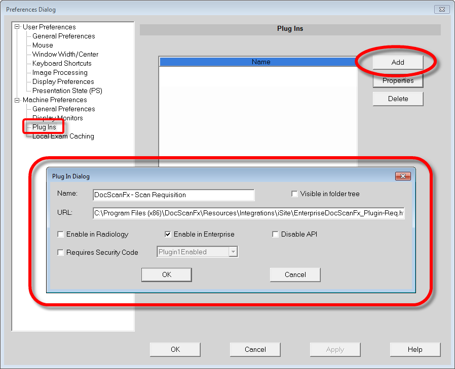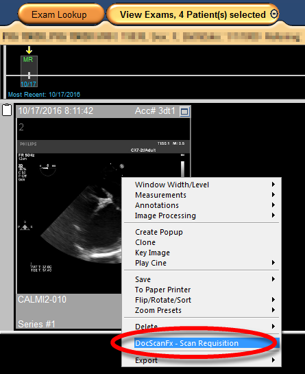 - If you want your users to be able to access DocScanFx from PACS with different modes, you can add additional right click context menu options for those modes. Follow the steps above to make another copy of the "EnterpriseDocScanFx_Plugin.htm" file which has the additional context menu name for the mode to run and the other mode name in it. Then follow the steps in the "Configure IntelliSpace PACS Enterprise" section again to add another plug in referencing this new file. Save the settings and restart your PACS session and you'll have two or more options to start DocScanFx.
