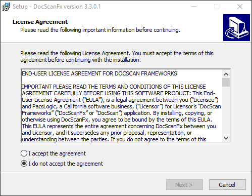 This article describes the steps to install DocScanFx versions 3.3.x.x and newer.