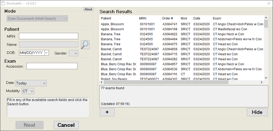 - The Scan Documents (Multi-Search) mode is a search mode where you can use multiple criteria to perform a search in your PACS archive. Test it out.